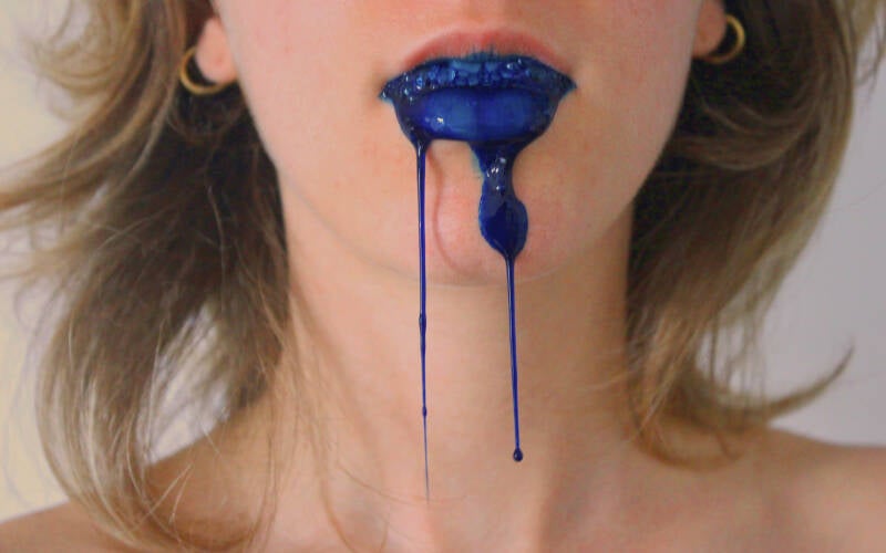 Portrait, visage contraint par une vitre qui se métamorphose